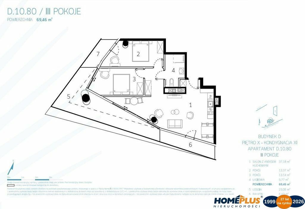 0% prowizji, INWESTYCJA ODDANA DO UŻYTKOWANIAAPARTAMENT: D_10_80, loggia: 23,06, dwa balkony: 6,43 m + 4,20 m ( z