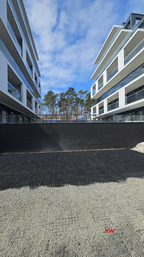 Zaledwie 200 metrów od szerokiej, piaszczystej plaży powstają eleganckie apartamenty o powierzchniach od 29,58 m² do 48 m². Każdy z nich został zaprojektowany z myślą o maksymalnym komforcie - funkcjonalny układ obejmuje przestronny salon z aneksem kuchennym, wygodną sypialnię, nowoczesną łazienkę oraz balkon lub własny ogródek, idealny do relaksu na świeżym powietrzu.
