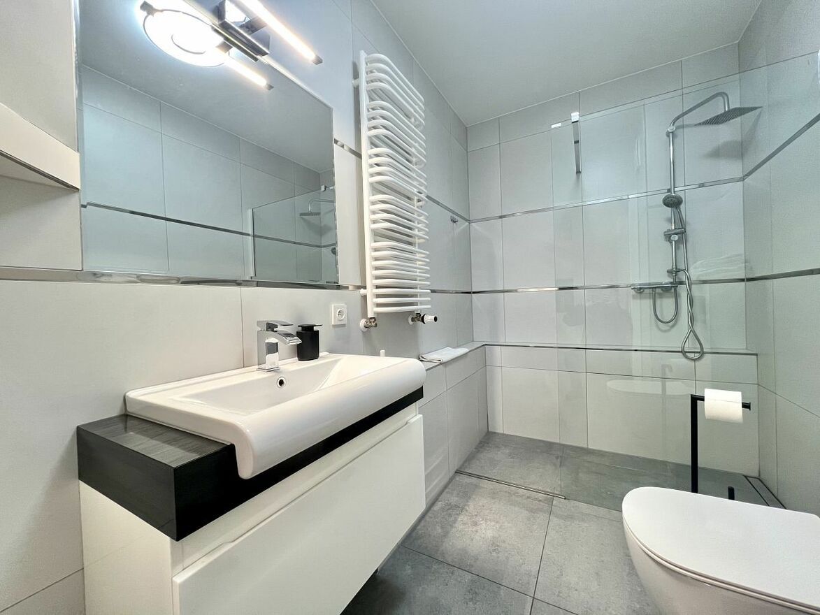 Informacje dodatkowe: Mieszkanie jednostronne. Ogrzewanie podłogowe + grzejnik drabinkowy w łazience. Apartament gotowy do wynajmu. Stolarka okienna aluminiowa, przesuwna. Podłoga w kaflach w części tzw. brudnej + panele w części sypialnianej. 2 cichobieżne windy, Kuchnia w zabudowie ze sprzętem AGD - płyta indukcyjna, lodówka z zamrażarką, zmywarka. Sypialnia wyposażona w dużą szafę. Lokalizacja zapewnia dostępność najważniejszych usług, oraz sklepów. Park Zdrojowy (ok. 200m)