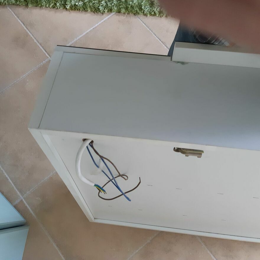 Lustrzane drzwi nad umywalką ułatwiają poranną toaletę i sprawiają, że pomieszczenie wydaje się większe i jaśniejsze.Ta biala szafka ścienna z lampka wewnatrz i w sumie z 6 półkami umożliwia ustawienie w zasięgu ręki butelek, słoików i często używanych przedmiotów